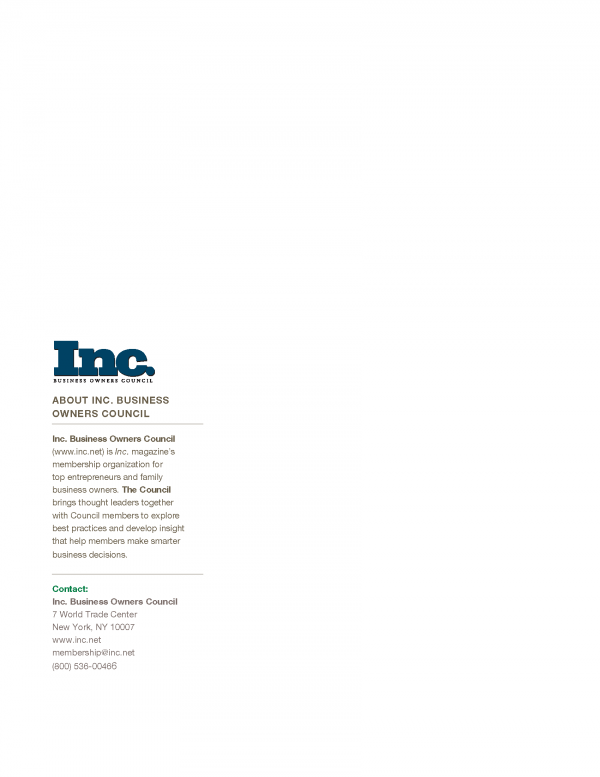 Posted Sat, Nov 14th, 2009 Inc. Business Owners Council By Edward A. Tafaro